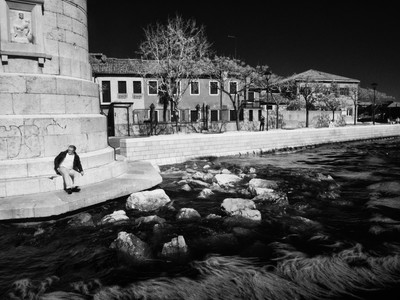 Человек у маяка на Мурано весной 2016