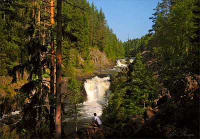 Если не ошибаюсь, то это водопад Кивач на р. Суна недалеко от Петрозаводска. Были здесь в августе 2008 г.: https://youtu.be/6_n3QLm6o64?t=38m4s |