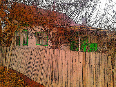 Рисунок. Дом в Семиковке на окраине Астрахани. Набережная реки Царев.
