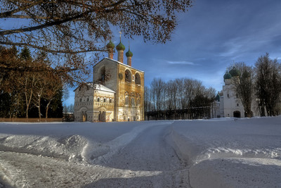 март 2018 г., Ярославская обл., На переднем плане звонница монастыря