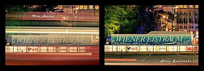 I really love, how the austrian flag was formed by the light of a passing by tram:-)