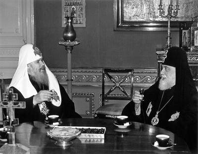 Патриарх Московский и всея Руси Алексий II и Илия II (Католикос-Патриарх всея Грузии). Москва. Патриаршая резиденция в Чистом переулке. 1990 г.