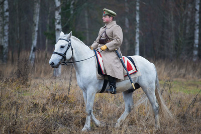 Красный коммисар на коне. Участник военно-исторической реконструкции "Гражданская война в России. Северо-Запад, 1919 г."