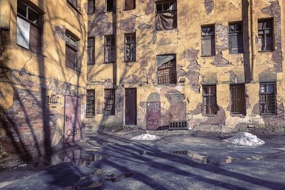 очень классная работа! окна, тени, лужи, снег, граффити - все сложилось в интересный узор