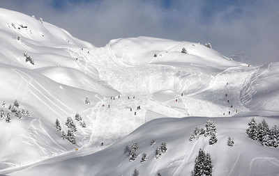 После обильных снегопадов это первый день, когда после обеда выглянуло солнце и появилась нормальная видимость на горнолыжных трассах.