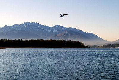 Чайка над озером.