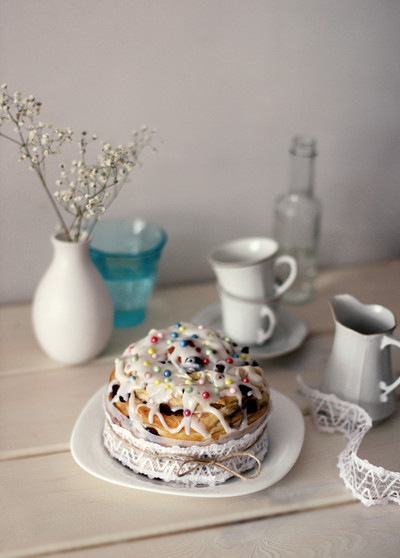 С куличом....
