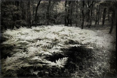 Надо же, у меня есть похожее фото леса с таким же папоротником, только в цвете. Хожу за земляникой и в одном месте, в лесу, такой вот участок с папоротником.