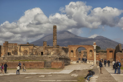 Везувий и Помпеи Везу́вий (итал. Vesuvio) — действующий вулкан на юге Италии, примерно в 15 км от Неаполя. Расположен на берегу Неаполитанского залива в провинции Неаполь, регион Кампания. Входит в Апеннинскую горную систему, имеет высоту 1281 м. В исторических источниках имеются сведения о более чем 80 значительных извержениях, наиболее известное из которых произошло 24 августа 79 года, когда были уничтожены древнеримские города Помпеи, Геркуланум, Оплонтис и виллы Стабий. |