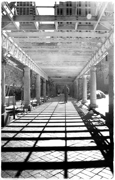 Даже не знаю как сказать-то покультурнее. Обсуждать тут особо нечего. Шли увидели метрично скучные тени, уходящие в перспективу. Сделали зачем-то вертикальный кадр и взяли в него уходящую спину. Заслугу автора вижу в том, что скучнее, на мой взгляд, придумать уже невозможно. Дальше только вперёд.