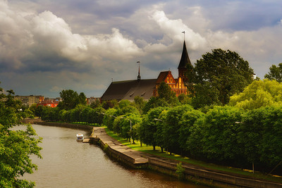 Вид на реку Преголя и Кафедральный собор в Калининграде
