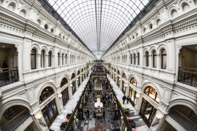 Москва, главный универсальный магазин, или просто ГУМ. Если взглянуть рыбьим глазом.