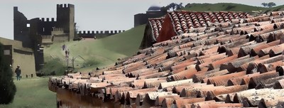 "Техника" исполнения сюжета напоминает фрагмент Диарамы, где совмещены плоскость и частичная имитация черепицы... Это снимок реальной крепости?