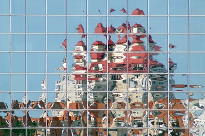 Безумные пиксели Отражение высотного дома в зеркальной стене с кривыми зеркалами. Не знаю, сносит ли крыши у зрителей от созерцания этой абстрактной картины, но эффект сноса крыши у дома налицо:-). |