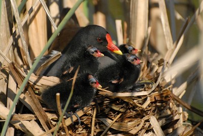 Удача , найти болотную курочку с птенцами и вот так снять. Отличный снимок.