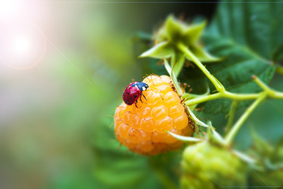 божья коровка на малинке