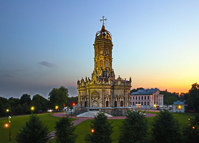 Знаменская церковь в усадьбе Дубровицы Считается, что Знаменская церковь в подмосковной усадьбе Дубровицы была заложена в 1690 г. князем Борисом Алексеевичем Голицыным, воспитателем будущего государя Петра Великого. Царь поддержал строительство нового храма и даже повелел написать для иконостаса два образа – святых князей Бориса и Глеба и апостолов Петра и Павла. Эти иконы сохранились до наших дней. В западном лепестке церкви сохранились двухъярусные деревянные золоченые хоры, на которых в 1704 г. во время освящения храма молился царь Петр I со своим сыном царевичем Алексеем. Знаменский храм – уникальный памятник русской архитектуры конца XVII– начала XVIII в., давно вошедший в сокровищницу мирового искусства |
