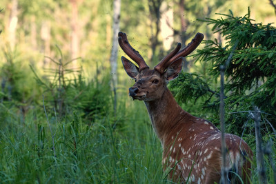 Бедный олень,сколько над ним вьётся кровососов!