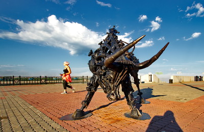 Бык в похожей позе стоит в начале Бродвея в районе Уолл-стрит. Все хорошо, только тень фотографа здесь лишний гость.