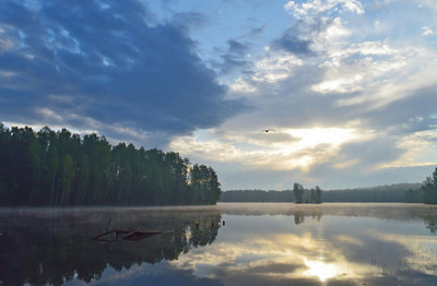 Птица хорошо вписалась в кадр и лёгкая дымка подчеркнула задний план.Замечательно!