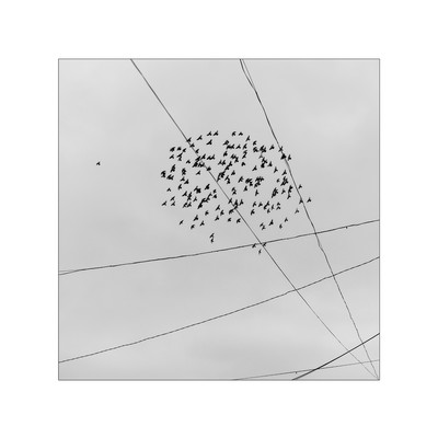 птицы, провода, небо