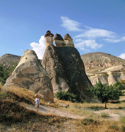 Каппадокия Каппадокия представляет собой практически ровное почти лишённое растительности маловодное плоскогорье, расположенное на высоте 1 тыс. м. над у. м., ограниченное на юге горами Эрджияс и Мелидз. Каппадокия имеет настолько уникальную геологию, что подобной ей местности на нашей планете просто не существует: чтобы сформировалась Каппадокия, более 50 млн. лет назад были почти сразу задействованы две абсолютно противоположные по своей природе силы. Каменные столбы. Благодаря эрозии и выветриванию (переменчивая погода в этом процессе сыграла не последнюю роль) в этой местности и появилась одна из наиболее интересных природных достопримечательностей – каменные столбы или как турки их называют «камины фей» (причём этот феномен присущий только Каппадокии и больше нигде не встречается). Расположены конусы обычно или сплошной стеной, или отдельными группами, при этом некоторые образования довольно высоки (около сорока метров). Столбы эти имеют в основном грибообразную форму: сверху состоят из базальтов и андезитов (они и формируют «шляпку»), снизу – из туфов. Если раньше туфовой основы под другими породами вовсе не было видно, то теперь благодаря эрозии заметна очень чёткая граница, отделяющая его от других пород. При этом та часть туфа, что соединяется со «шляпкой», постепенно утончается – и через какое-то время вершина столба полностью обрушится вниз. |