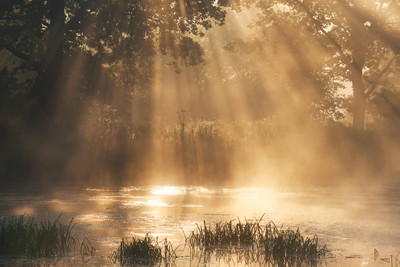 утро, туман, свет