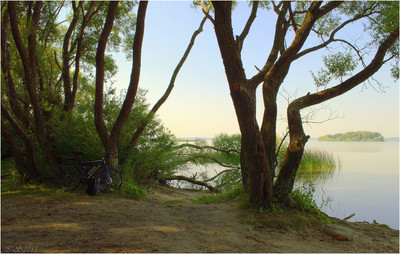 в тени деревьев