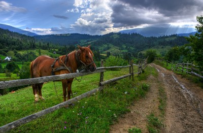 У дороги Конь отдыхает в перерыве между работой. Вид из окрестностей села Лопушанка (Закарпатье). 25 июля 2018 г. В Карпатах взрослый конь всегда большой трудяга. Он и возит, и пашет, и косит, и тянет… При этом слишком большого ухода за ним не надо. В перерывах между работой сам на травке пасется. Правда рабочему коню надо давать еще овес и другую еду, иначе его силы быстро иссякнут. Конь трех-четырех летнего возраста стоит прим. 22-25 тыс. грн. Сохраняет работоспособность до 20 и более лет. Другие фото этого дня: https://i.imgur.com/FO7MXZD.jpg https://i.imgur.com/MaS7Ve6.jpg https://i.imgur.com/Dg0SH7k.jpg |