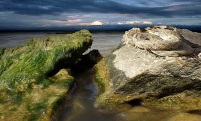 Интересные образы: и слева - дракон из моря, и справа... Только змей должен быть сработан более естественно - и тонально, и по тени. Тоньше, точнее...