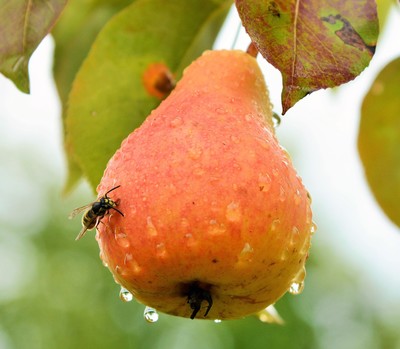 "Как сочен плод, что с лампочкою схож..." "Груши - словно лампочки, На дереве висят, Привлекают запахом И взрослых и ребят: Желтые, душистые, Нежно - золотистые. Повисели и упали ... Пчелы груши доедали." Н.Меркушева |