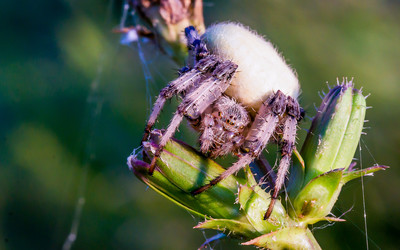 Диковинный паук на лесной поляне.