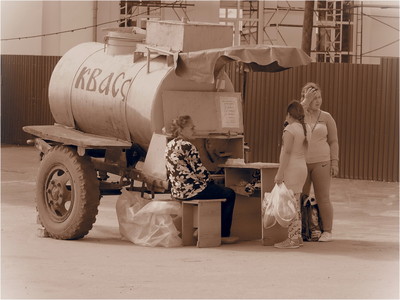 Ностальгический снимок ... Помню всегда была очередь возле таких бочек .. Нравится !