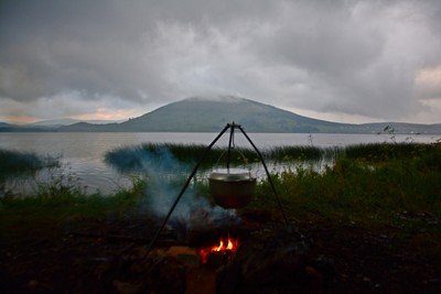 Вечер на берегу озера Аушкуль в Башкирии.