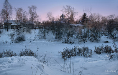 Красивая заря на зимнем фоне!