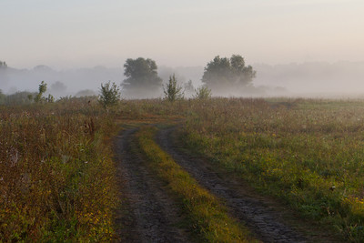 дорога,туман,рассвет