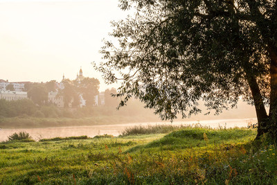 Туманное утро воскресного дня 9 сентября . Река Западная Двина, г. Полоцк.