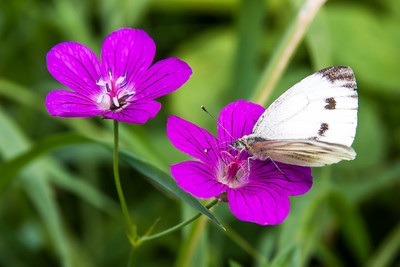 Бабочка капустница на лесном цветке.