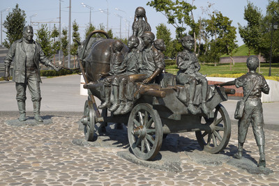 Памятник Асгату Галимзянову. Благотворительную деятельность начал с помощи детскому дому # 1 Казани: купив целую телегу яблок, груш и апельсинов, отвёз её детдомовцам, в то время как фрукты могли себе позволить далеко не все семьи. В дальнейшем также покупал для детей фрукты и тёплую одежду, автомобиль Нива, автобус ПАЗ; проводил с ними время, катая на телеге. Советую почитать об этом человеке в Интернете. |