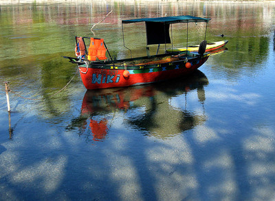 лодка, озеро, отражение