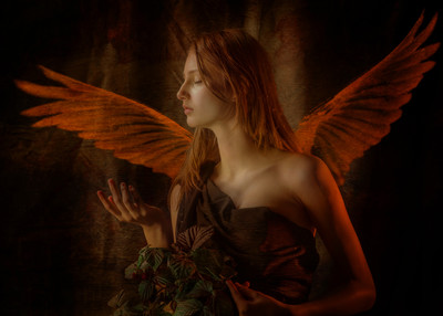 Ну... крылья явно маловаты, они не поднимут такое тело в воздух. А в природе всё продумано и гармонично. Здесь явный диссонанс, который выглядит инородным элементом, и скорее портит всю идею. Понимаю, что найти крылья нужного размера, не было возможности, в этом случае лучше вообще отказаться от идеи и вспомнить, что классика основа всего, сделав классический портрет. Что еще... Плоские крылья, убиты фактурой. И из-за этого так же смотрятся не естественно за спиной модели, точнее нарисованными на ЗП. Про перспективу, уже сказали, она не правильная по отношению спина-крылья. Спина находится не под тем углом, что и положение крыльев. И вот