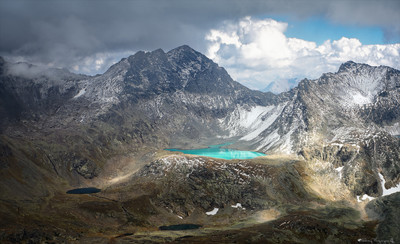 Изумруд в оправе гор. Озеро Буша. КЧР. Имеретинские озера. "Озеро Н. А. Буша – одно из самых глубоких озер всего Имеретинского горного узла. Его глубина составляет 24 метра. Площадь озера — 91000 кв. м. Озеро расположено на высоте 2817 метров, в каре между вершинами Буша (3119,8 м) и Географов Кубани (3212,2 м). Озеро имеет очень необычную форму: маленькие бухты сменяются крутыми скалистыми мысами, резко обрывающимися в воду" Источник: http://mountaindreams.ru/lake/catalog/imeretinskie-ozera/ozero-n-a-busha/ |