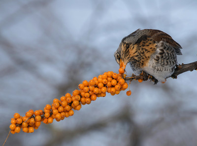 Дрозд-рябинник на облепихе