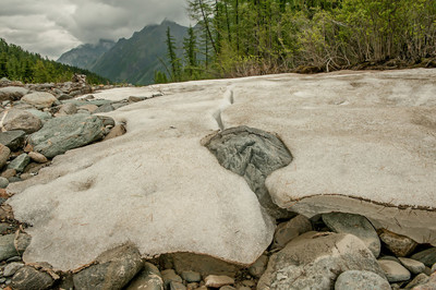 Снег в долине реки Шумак. Бурятия, июль 2018 года.