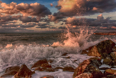 Приятные теплые краски, красиво подсвечены волны-брызги...