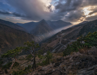 Высокогорье Дагестана. Один из чудных вечеров в высокогорном Дагестане. Чтобы подняться сюда на автомобиле, нам пришлось проехать по достаточно экстремальному серпантину. Несколько десятков петлей, крутой подъем и очень узкая дорога. Через боковые стекла лучше было вообще не смотреть ))) Цумадинский район Республики Дагестан, октябрь 2018г. |