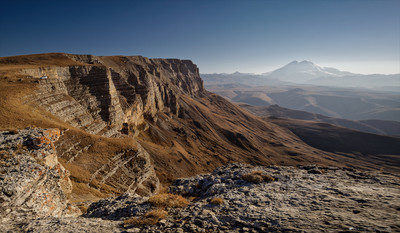 Престол Богов. Именно так, как говорят, местные жители называют это место. Плато Канжол. Дорога к нему утомительна и не самая простая, чуть больше 50км по горным дорогам и серпантинам. Причем и сама дорога очень живописна и виды с плато просто ошарашивают своим масштабом и высотой скал, на которых стоишь. Канжол выше Бермамыта и ближе к Эльбрусу на 10км. Высота, почти 3000 нум. Фотографий отсюда не так много, так что увидеть своими глазами ЭТО стоит! Место богато и на виды и на исторические события. "На плато Канжал в ходе ночного боя в 1708 году кабардинцы под предводительством князя-валия Кургоко Атажукина нанесли поражение войскам крымского хана Каплан-Гирея, состоявшим из турок и крымских татар." |