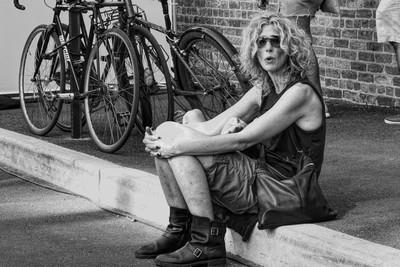 Мама с сыном устали бродить по Бруклину.