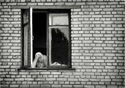 Ничего надуманного нет, человек сидит в одиночестве в своих мяслях. Кирпичная стена - своего рода материал, из которого сложилась судьба этой женщины. Но название и правда не очень... |