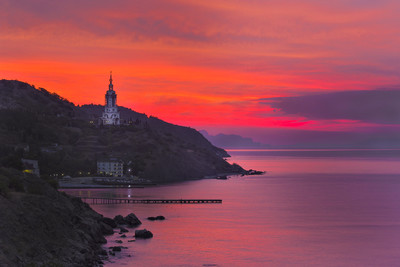 Крым. Храм-маяк Николая Чудотворца Храм расположен в селе Малореченском (юго-восточное побережье Крыма). Храм-маяк является самым высоким храмом в Крыму. Храмовый комплекс входит в состав Мемориала всем погибшим на водах. |